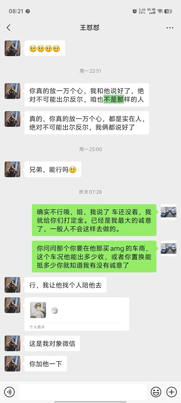 因为车是女的用,男的名下,期间女的各种要我过去,我说车涉及到两个人,比较难办等下这么远我过去你们随便一句兄弟我老婆我老公怎么样,我找谁哭去?女的再次强调他们不是那种不守信用的人[我想静静][我想静静]结果打脸打的也太快了[呲牙]庆幸自己没有过去,像网上这种例子太多了,靠嘴辩解是没用的