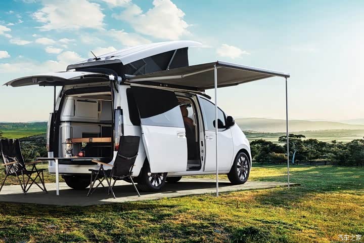 车身侧面,新车采用移滑门的设计,同时配备上了镜面轮毂和隐私玻璃,让整车十分的时尚且具有不错的私密性。新车的车顶进行了一些加装,可以支起小帐篷。新车的尾灯造型修长,点亮后拥有不错的辨识度。车尾还十分贴心的配备了防蚊帘,这样的设计使得出去露营能更好的防蚊虫,而且还十分透气。