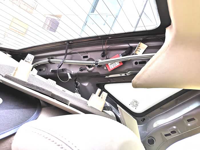 7、C柱比较紧,拆的时候注意顺序,先拆后门边盖板,然后顺着拆,都要拆掉,铁卡扣容易拆坏,先买点备用,另外注意铁卡扣不要掉进门框里,将来会有异响。