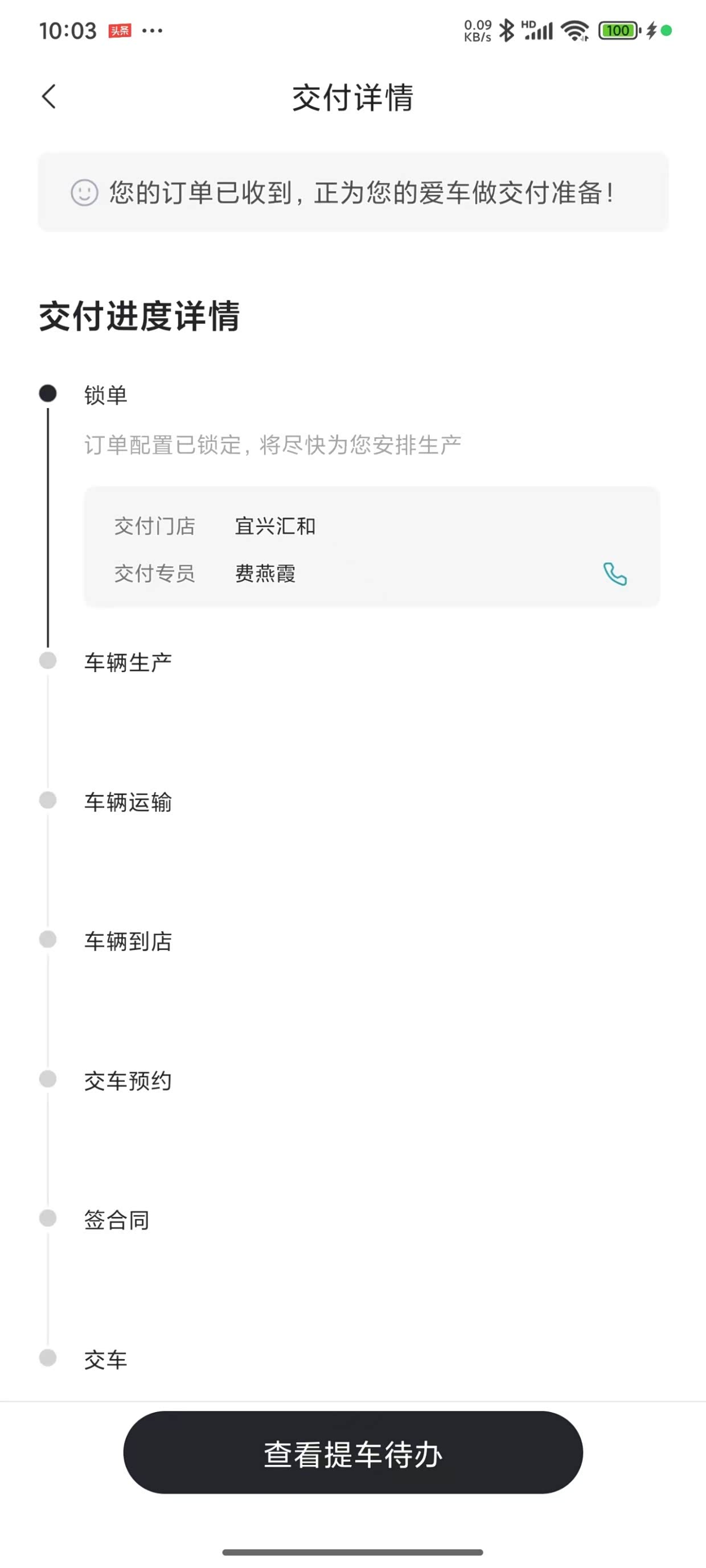 今天是订车的第三天了,这三天我每天打开APP查看无数回。今天终于有了一点动静,匹配了专门的交付人员。