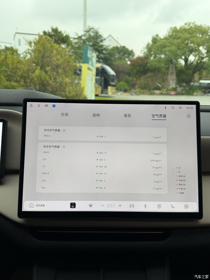 可以实时看到车外的环境,今天的空气质量还是挺不错的。