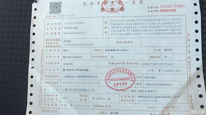 在12月15号拿到了牌照,第二天就去福特4S店订车了,定的是三厢的探戈红,订车的时候销售说可能要等一个月左右的时间,我一看是在春节之前,也还可以接受。结果过了两天,销售打电话来说从另一个店调了一台探戈红过来,现在就可以提车。于是在12月22日,正好是周六,我就去4S店把车提了回来。
