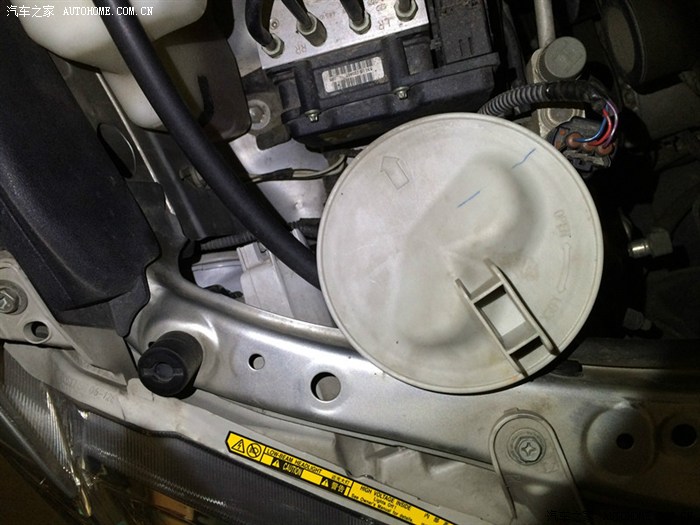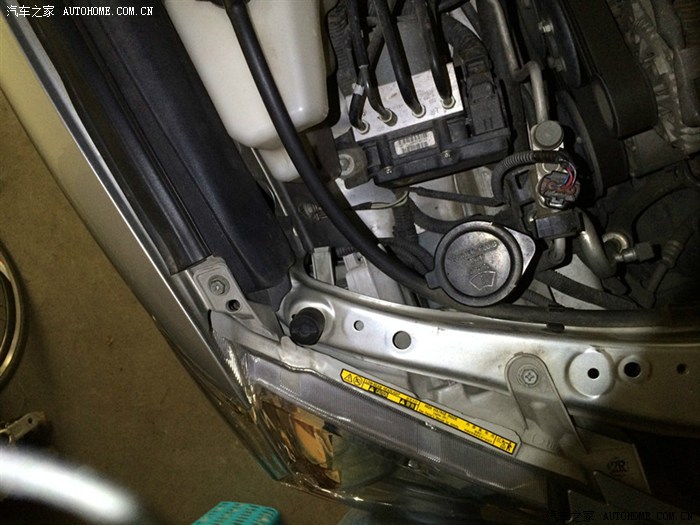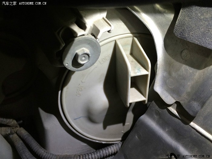 打开发动机盖,这个就是近光灯的盖子,给他往open放下一扳就可以拿出来了