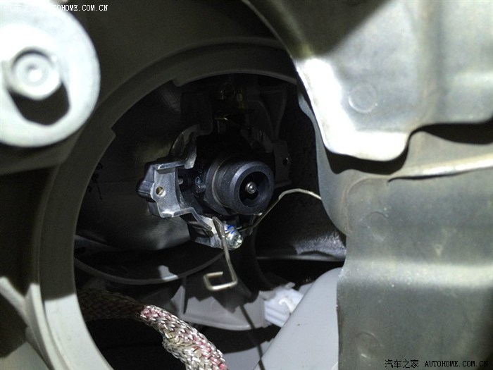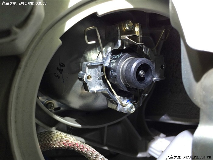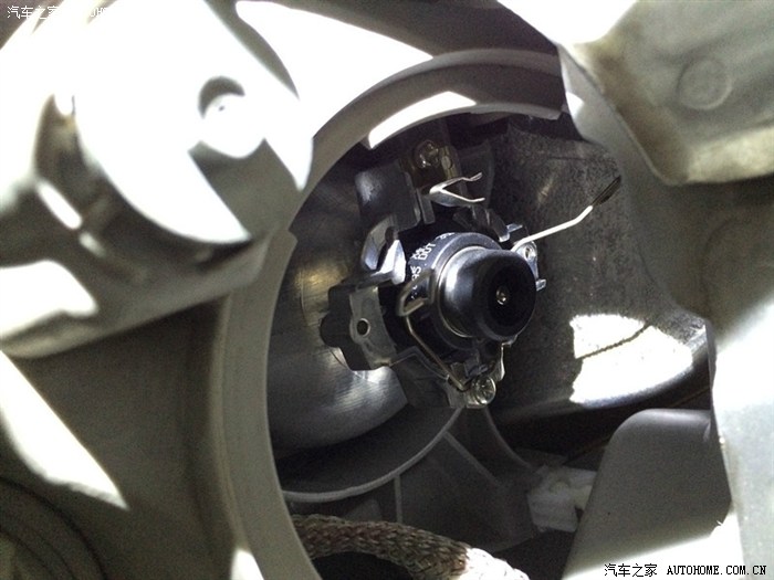 再就是卡氙灯灯泡的两个卡扣,得按住顶部那个铁丝一样的圈圈往里按再往中间推,两边各一个