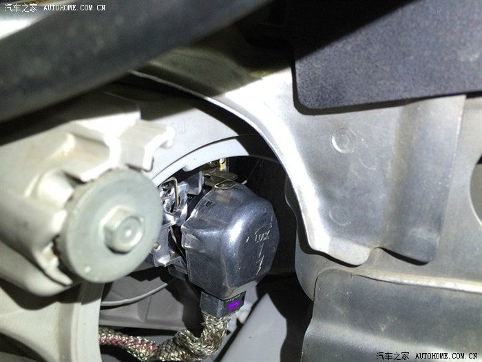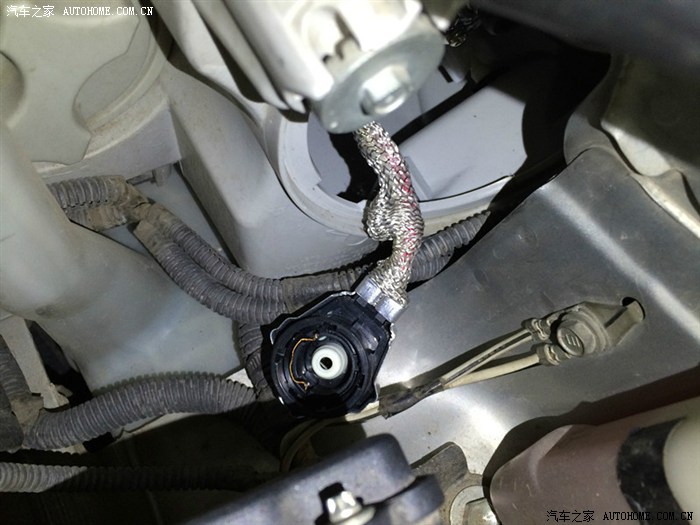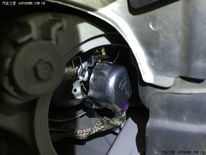 拆掉盖子后是这根线,往减号方向一扭再向外一拔就出来了,前提是大家一定要把灯关掉,氙灯可是高压