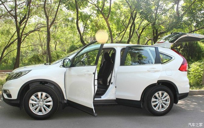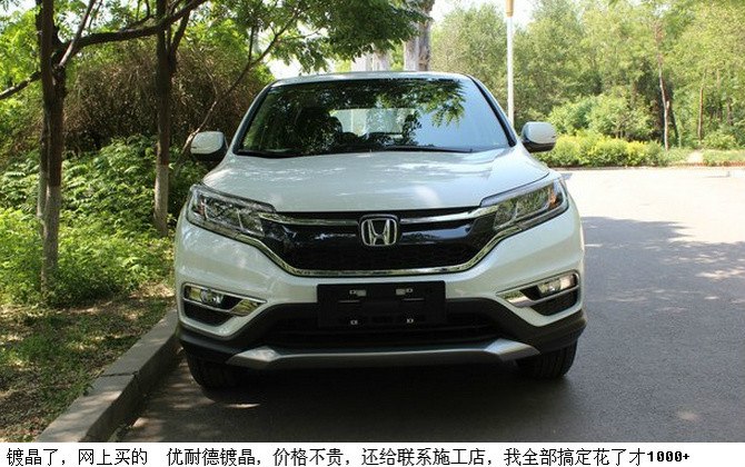 5、CRV,隔壁就是东风本田4S,合计着来了就去看看,单位有同事买了13款CRV黑色的,当时我怎么看都觉得不好看,到东本一看,第一次去觉得还可以,后来隔了一天又去了一次,觉得挺好看,而且当时带着媳妇去的,媳妇说CRV比RAV4好看。为了媳妇“好看”这俩字,当时就跟销售顾问谈价格,那天是5月1日,销售说15款现在刚上市,店里有活动,优惠8000.我说要是优惠1万多我就定,销售说新款刚上市,不能有那么大的优惠,因为我还不太了解CRV,想着先回家看看论坛,把销售名片拿了一张,就跟媳妇回家了。到家马上打开电脑仔细的看CRV,一看马上就被迷惑了。。。。销量大,保有量大,省油,小毛病少,包括小偷最爱偷它等等!!!!!