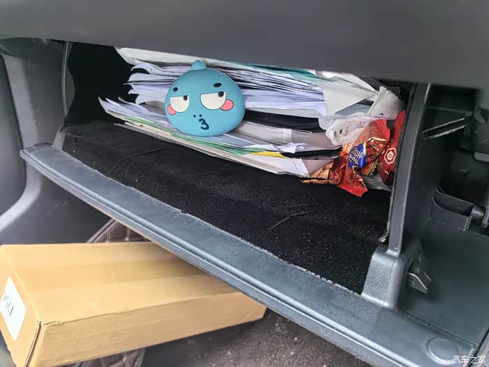 这是手套箱,里面贴了植绒布。之家小怪兽香薰也在里面