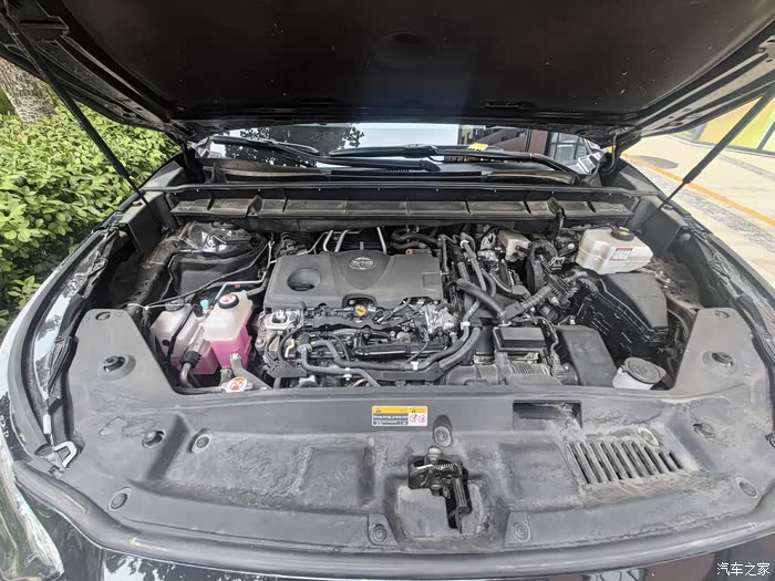打开发动机舱,这个价位该有的气压撑杆没有缺席,感觉丰田的车发动机舱布置都不是很用心,有些凌乱。