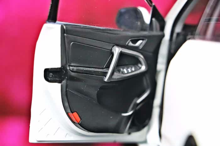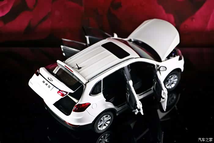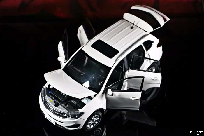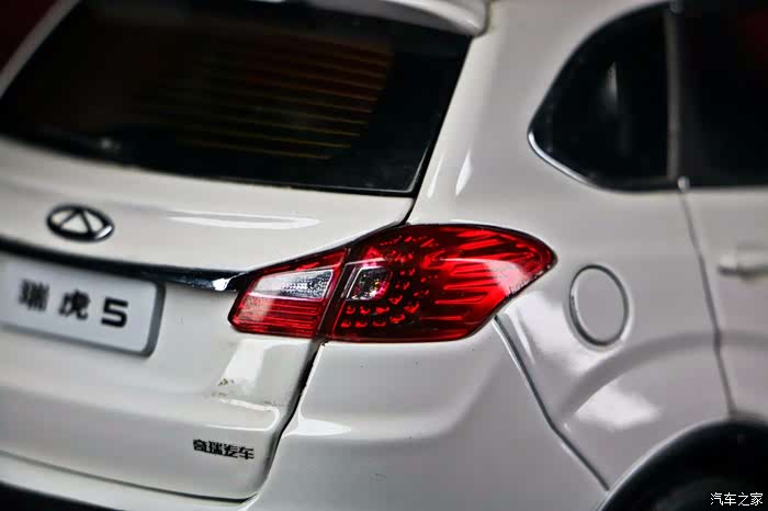 模型的代工厂商不明,车模的底盘和包装盒均为标明,但做工还是很考究的,首先我们来说一下它的可动件:四门六开,这已经是国产模型的标配了,天窗挡板可动,前排座椅可前后调节,后排座椅可折叠,后排中央座椅的扶手可以打开/关闭,后备箱挡板可以打开,打开可见备胎,可动件就是这些,给我的印象就是中规中矩,没有太大的惊喜。车模的车们下方的迎宾踏板的细节大家可以注意到,里面有刻画瑞虎的英文标识,很上档次,实车也有这个配置,尾部的造型比较有力量感,尾灯有少许凸起,后备箱上的贴字均采用了金属独刻片,立体效果很棒,车门的内饰中控台是有些塑料感,但是中控台的导航区域,还是比较有质感的,虽然是贴纸,但是不失真,这点做的挺难得的,后排座椅的可动件应该就是全车的亮点了,全金属的底盘,很有分量,但是底盘没有写明模型厂家,蛮可惜的。好啦,模型的状况就是这些,我们一一去赏析吧!