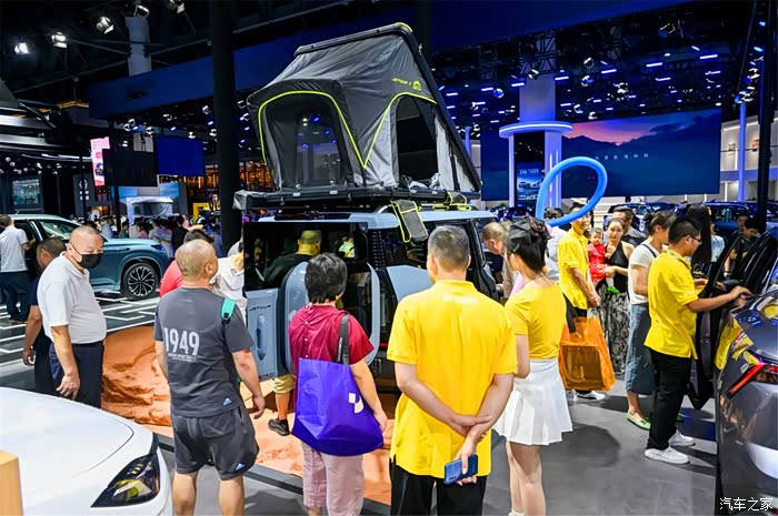展台的人还真多,我围着这款旅行者上下打量了好久。有时候也会凑到工作人员面前听一遍车型介绍。