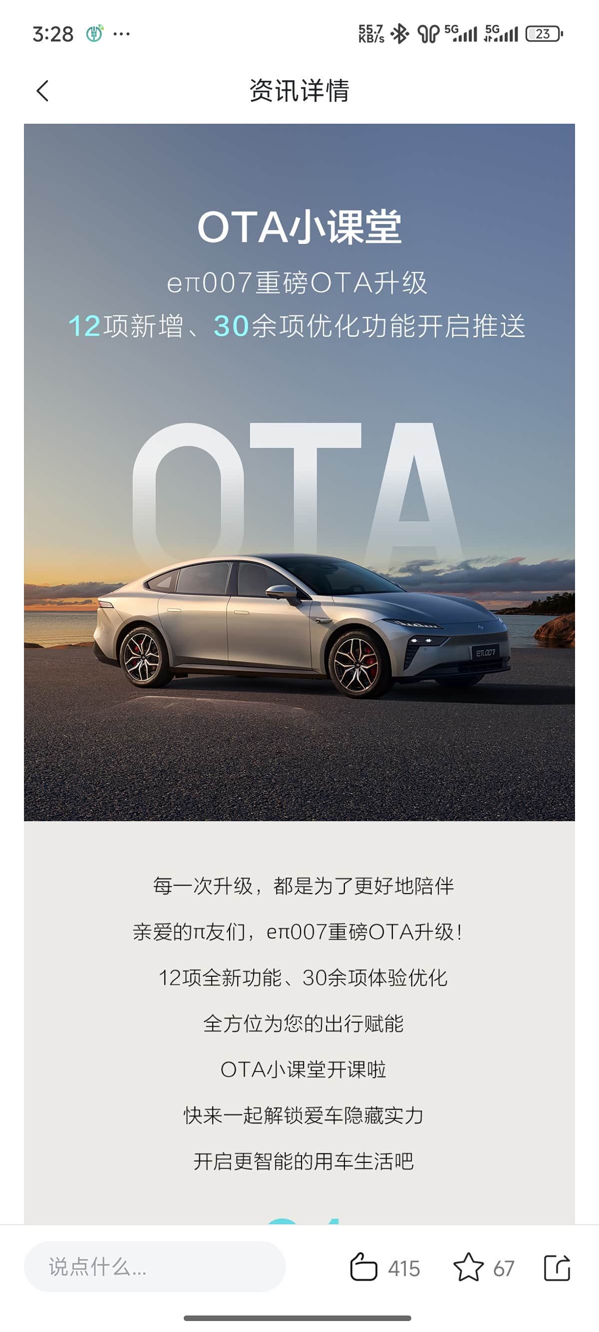 距离上一次OTA已经半年,这半年对下次的OTA报有了太大的希望。就在前天,OTA终于发布了。看了APP的OTA提示帖子后发现此次版本属于大更新,针对24款007的诸多问题与不足做出了升级。