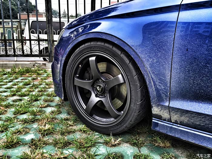 上身效果非常战斗,数据给大家参考,8X8J,ET35,搭配225/40R18的AD08R,因为AD08R比普通轮胎宽一些,所以更饱满,基本能齐平翼子板,不会蹭内衬,完美