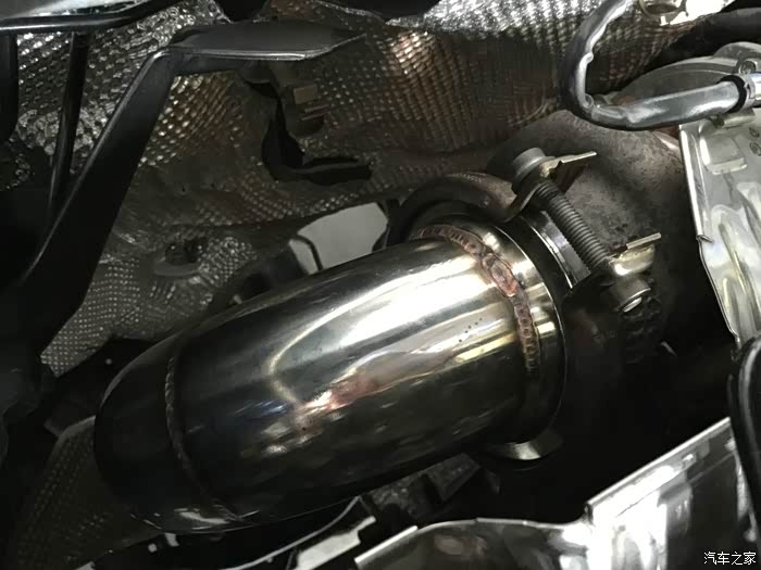 因为确定刷二阶,不管什么品牌的ECU程序,头段都是必须换的。直通和高流量,我还是选择了前者,原因是不管高流量再好,通顺度永远比不过直通,而且高流量的三元的目数普遍比较低,所以排气一样会有味道,既然选择追求性能,那就纯粹一点吧。排气全段76mm,管壁超过1.2mm厚,用料很扎实,自己配了一个TDTAS的氧传感器屏蔽座,至今没有报警,一切正常。