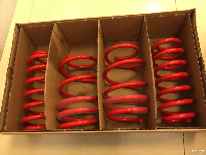 避震LZ选择了一套Eibach的SportLine弹簧,足够街用了,而且外观将会更和谐。弹簧到货的时候特意查看了一下编码,对照官网,确认是S3的,为什么说这个,因为很多商家会用A3的弹簧冒充S3的,而A3其实都对应有很多版本,最低版本的和S3相比,成本会相差600元左右,虽然一样能装上,高度也差不多,但是前后轴负荷数完全不一样,发挥不了短弹簧的性能,甚至还不如原厂。