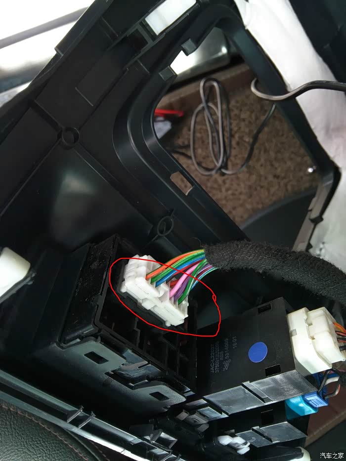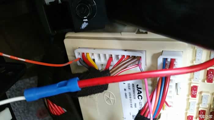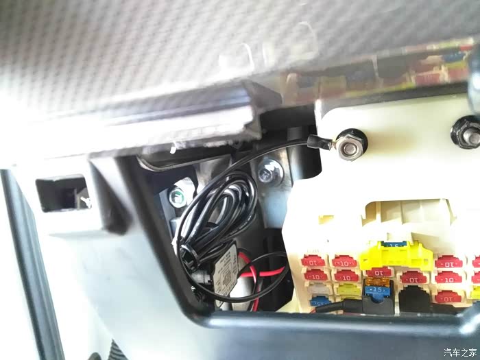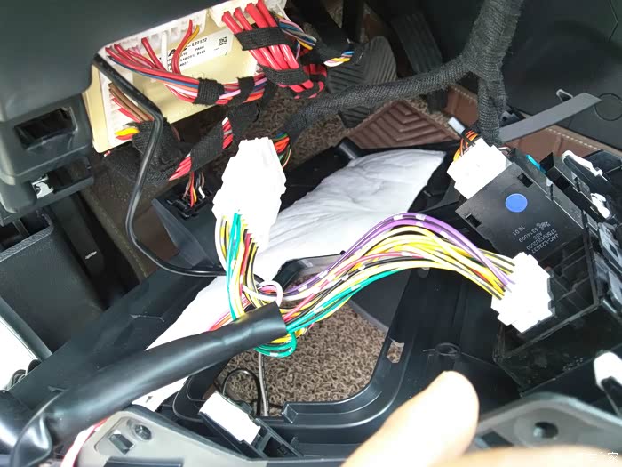 插头接好得效果,然后还需要接开头说到的3根线。当然最简单的就是ACC取电了,还是使用取电器,插到点烟器保险丝位置就可以了,最重要的就是下面2根线。