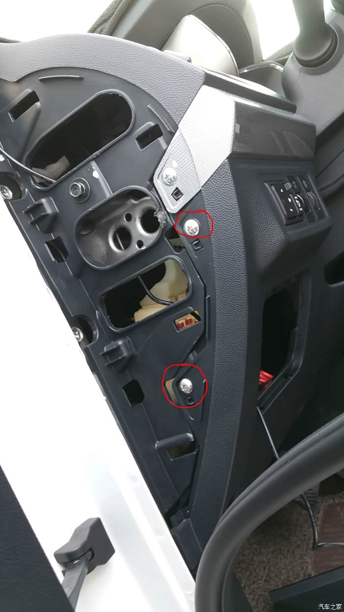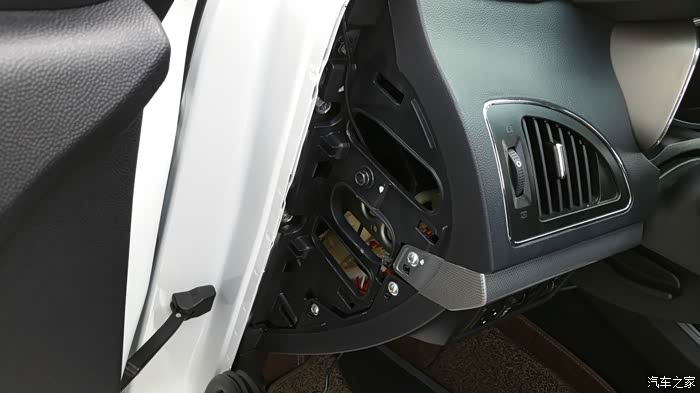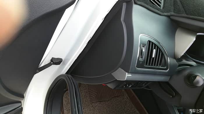 线一直从顶棚走到A柱这里,然后用手使劲往外扳就可以打开缝隙,因为里面有一次性的卡扣,还有麦克风,所以搬开缝隙把线塞进去就可以了,没有必要取下来,要不有可能会把麦克风的线拉断,还有一次性卡扣还要更换。