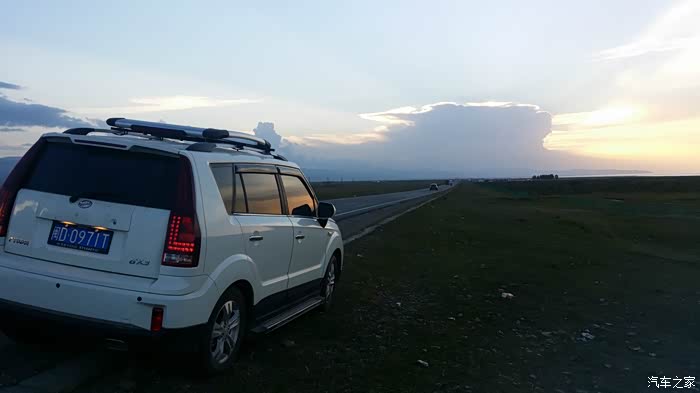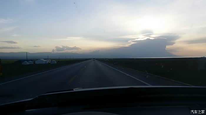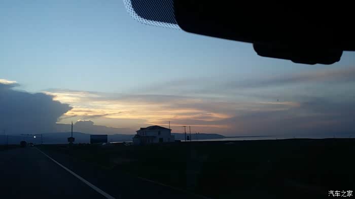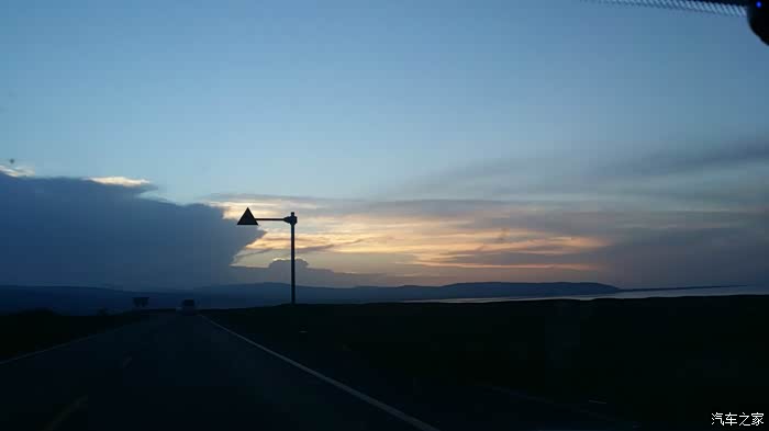 地市平坦 夕阳也是持续好长时间,右前方青海湖,那个灯可是对面的车灯哦