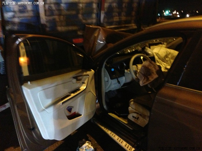 ,车头已经完全插到卡车屁股下面了,前挡玻璃的下部也碎了,发动机盖完全被掀翻、吸能、折叠成了一起。卡车的大梁直接顶在了发动机的位置上。再回看车厢内部,基本没有形变,仪表盘停在80码的位置......初步查看了情况后,想把后备箱打开,赶快把警示架拿出来,结果狗血的事情发生了,由于电瓶在撞击中彻底粉碎,后背箱打不开了(内部也不行)工具都取不出。还好卡车司机有三角架,赶紧放在100米后的地方,提醒后面的车辆。做好这些事情后,赶紧打110报警,期间和卡车司机了解了下情况,他由于载的是石墩子所以车辆上坡跑不动只有在20码左右...... 15分钟后警察赶到,了解了下情况后,一边赞叹volvo的车牢固,一边写了事故单(追尾所以我全责)。交警和我说,他这类事故见得多了,还是第一次见到A柱都不变形、门都能开的的。填完单子之后叫来拖车,由于后备厢打不开,拖钩也拿不出来,还好家里有个亲戚开的是s80又正好在附近就先借了拖钩一用,结果没想到拖车竟然还拖不出来,无奈只好再打电话叫来吊车,把卡车吊起来再拖volvo出来。。。等了将近1小时,15吨的拖车终于缓缓到来(也有网友说是25吨的),在大家的努力下,终于拖出来了。看着面目全非的60,心中无比难过。安排拖去最近的4s店后,当天的事便结束了,之后等4s的定损,以及保险公司的赔偿。