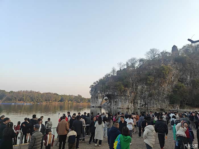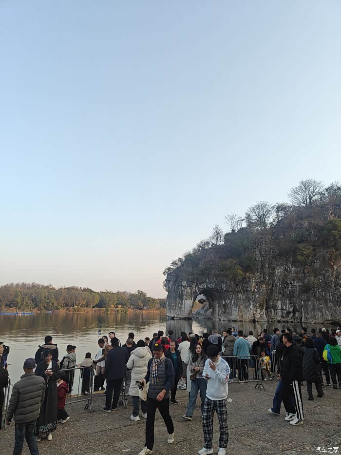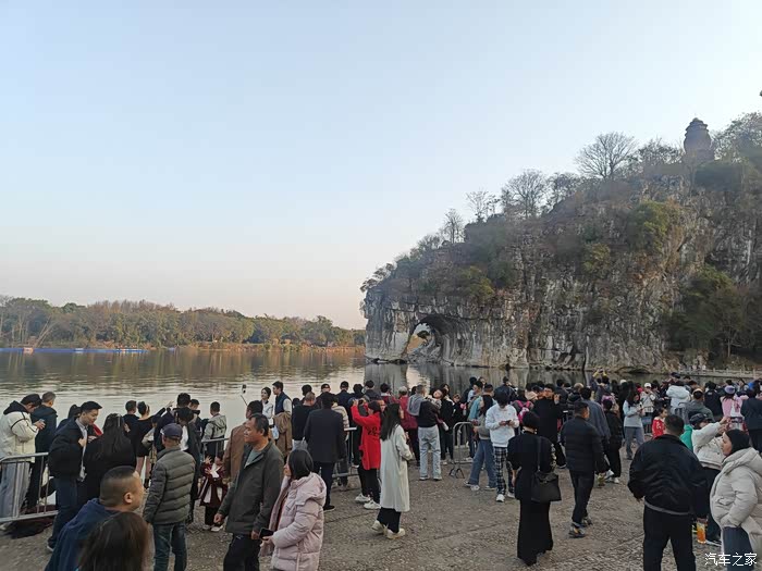 来到桂林市区后,就直接出发去到两江四湖景区就,首站就是看一看桂林的网红象鼻山,也就是像大象鼻子的山,大年初一这里就人山人海的,可能是冬季枯水期吧,看上去很普通平平无奇,但是也算是打卡了。