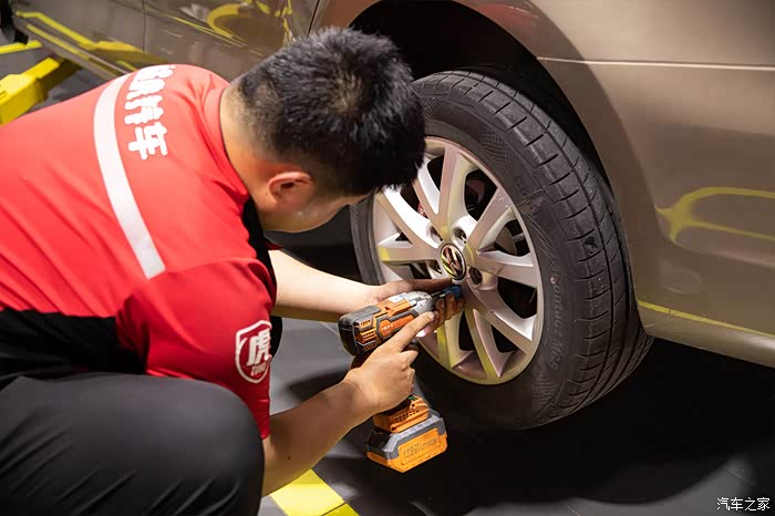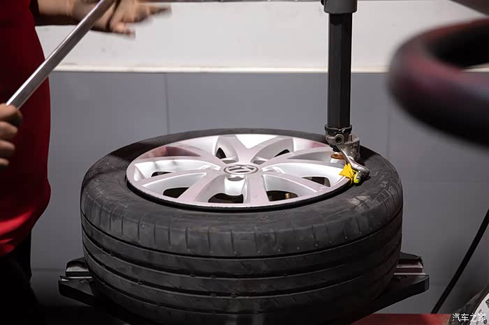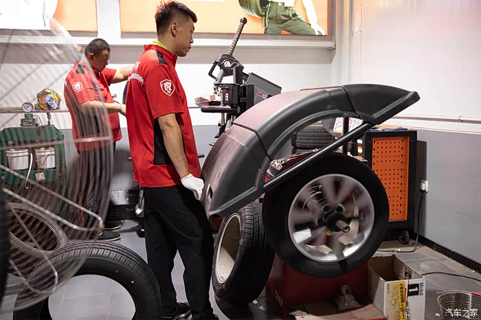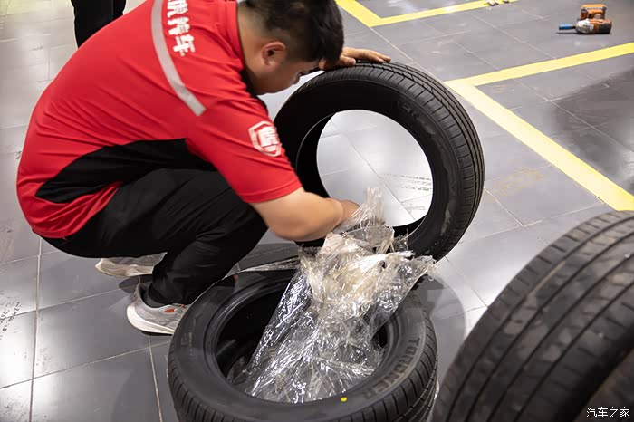 轮胎已经到店,在app上预约了施工时间,按时来到店内进行更换作业。