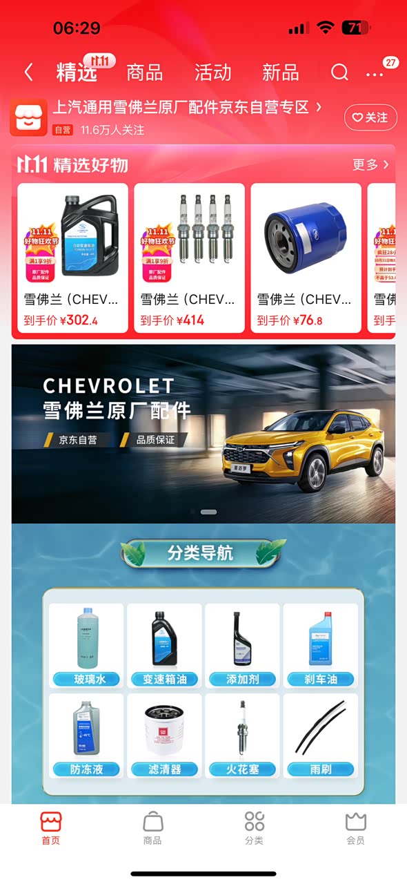 店铺是,上汽通用雪佛兰原厂配件京东自营专区