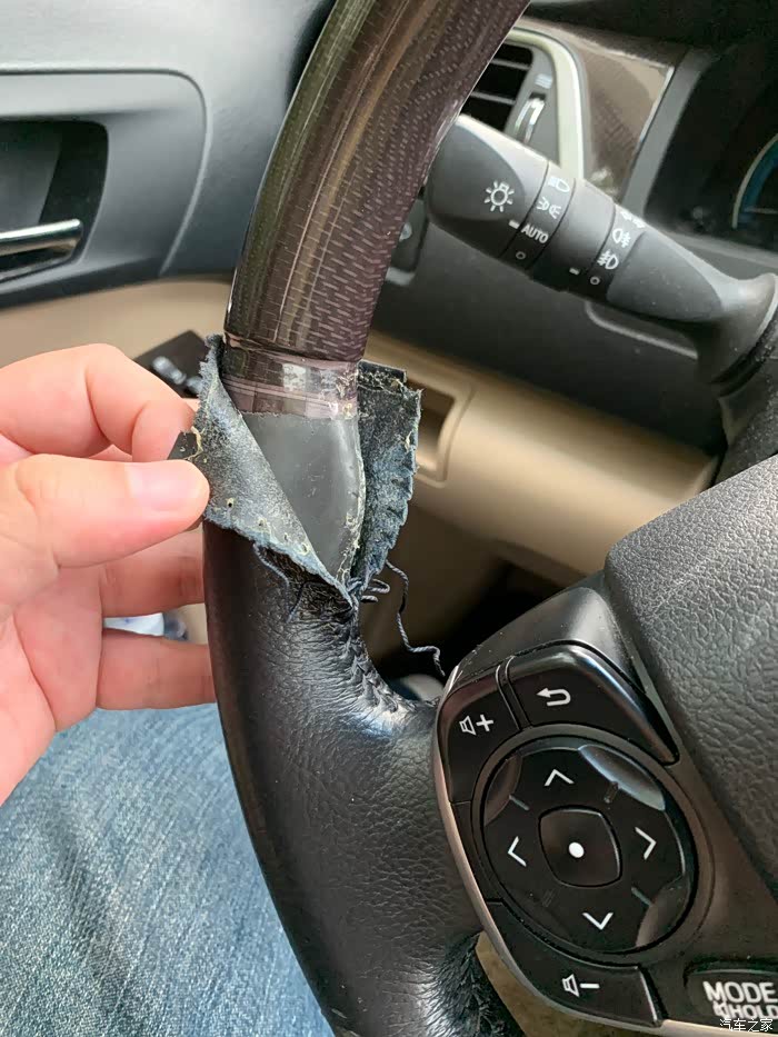1.剥离扔掉原车皮套(实际是人造革),耗时10分钟