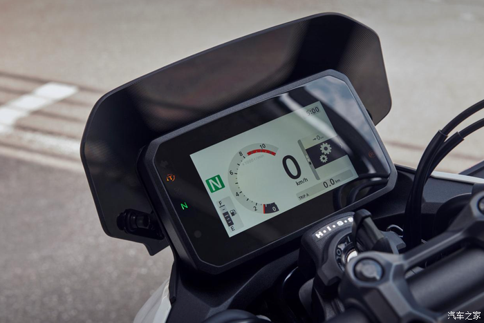 虽然本田一向在中小排量车上比较吝啬电子系统的升级,但在这台CB500 Hornet上面还是比较大方的。仪表为5英寸的TFT全彩液晶,而且是最新的型号;并且支持本田的Roadsync系统,可以实现手机和车机的互联;通过把手开关或者语音来实现音乐、通话的控制。虽然这类配置在其他品牌或国产车上面已经屡见不鲜,但对于本田而言,在这个级别的车身上面也算是迈出了一步。