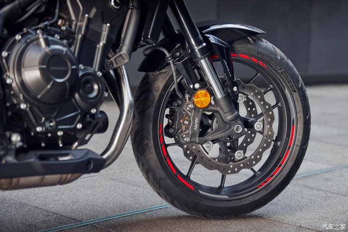 其他车身配置方面,前减震为Showa 41mm的SFF-BP倒置结构,后减震同样来自Showa;整体的悬架规格还是不错的,作为本田的性能街车,看得出来本田也拿出了一些诚意。而制动方面则是前双盘配日清4活塞卡钳,后双活塞卡钳,标配ABS的组合。车身油箱容积为17.1L,百公里油耗为3.8L左右;续航这块还是挺给力的。
