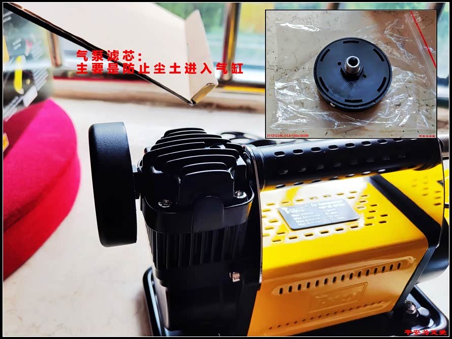 这个东西开始没搞明白是什么,询问商家后,告诉我这是进气口过滤器,同时告诉我若不是在沙漠这种细小灰尘比较多的环境,可以不用安装,而且之前我说收纳包放不下气泵,就是安装了这个过滤器后,发不下,所以平时我这个只能拆了放在包里。