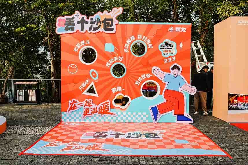 布置得像个游园会,有丢沙包的游戏、还有各种小摊。