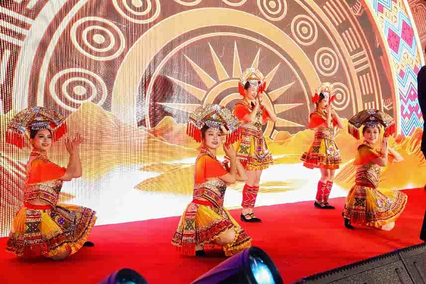 还看到很多民族歌舞表演,穿着特色的民族服饰,看得人目不转睛。现场还唱起了那首耳熟能详的《刘三姐》选段,不少车主跟着一起哼唱,气氛特别热烈。