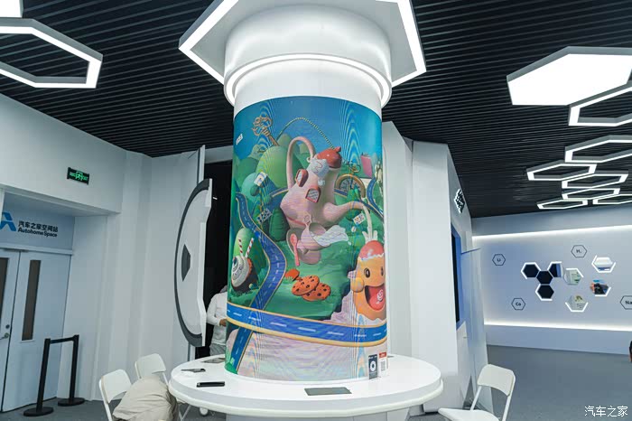 当然了,很多朋友带着孩子来看车,空间站也提供了儿童娱乐区,可以作画,让自己的作品飘荡在液晶屏上,全天展示。