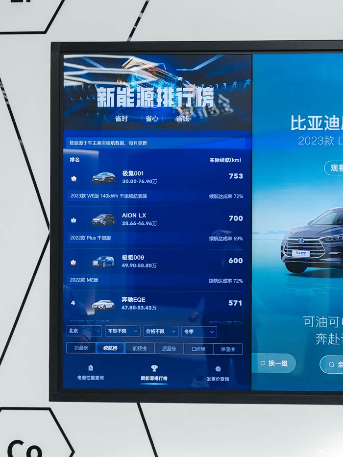 接下来,可以通过车辆大数据,了解我们想要选择车型的实测续航表现,以及续航排名、价格排名、热度排名等信息。从多方面数据了解车辆,右侧可以提供车辆照片。VR内饰照片,带来沉浸式体验。