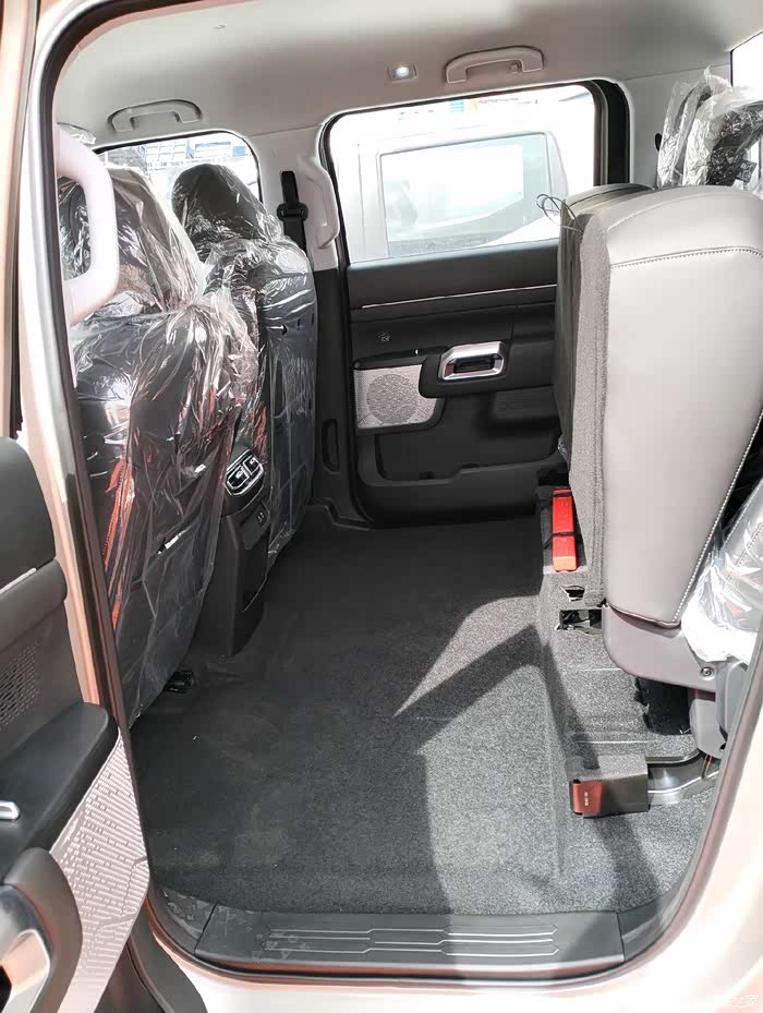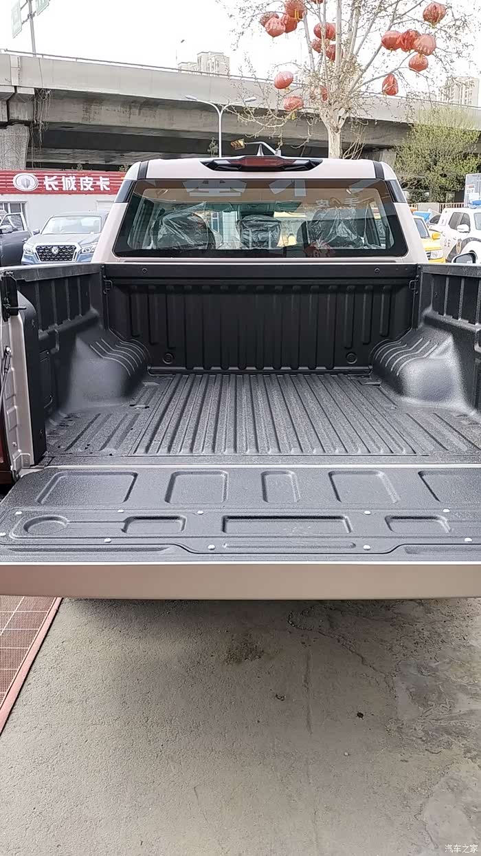 从车里出来,我又绕到车尾看货箱。这货箱尺寸够大,里面也很规整。不管是装点家里的旧家具,还是拉点建材啥的,都没问题。而且货箱表面有防刮的涂层,不用担心装东西的时候会刮花。侧面和尾部还有固定装置,拉货的时候能把东西牢牢绑住,开车的时候就不怕货物乱动了。如果要运输一些比较长的物品,比如木材、管材等,还可以把货箱尾门放下,进一步拓展装载长度,实用性大大增强。