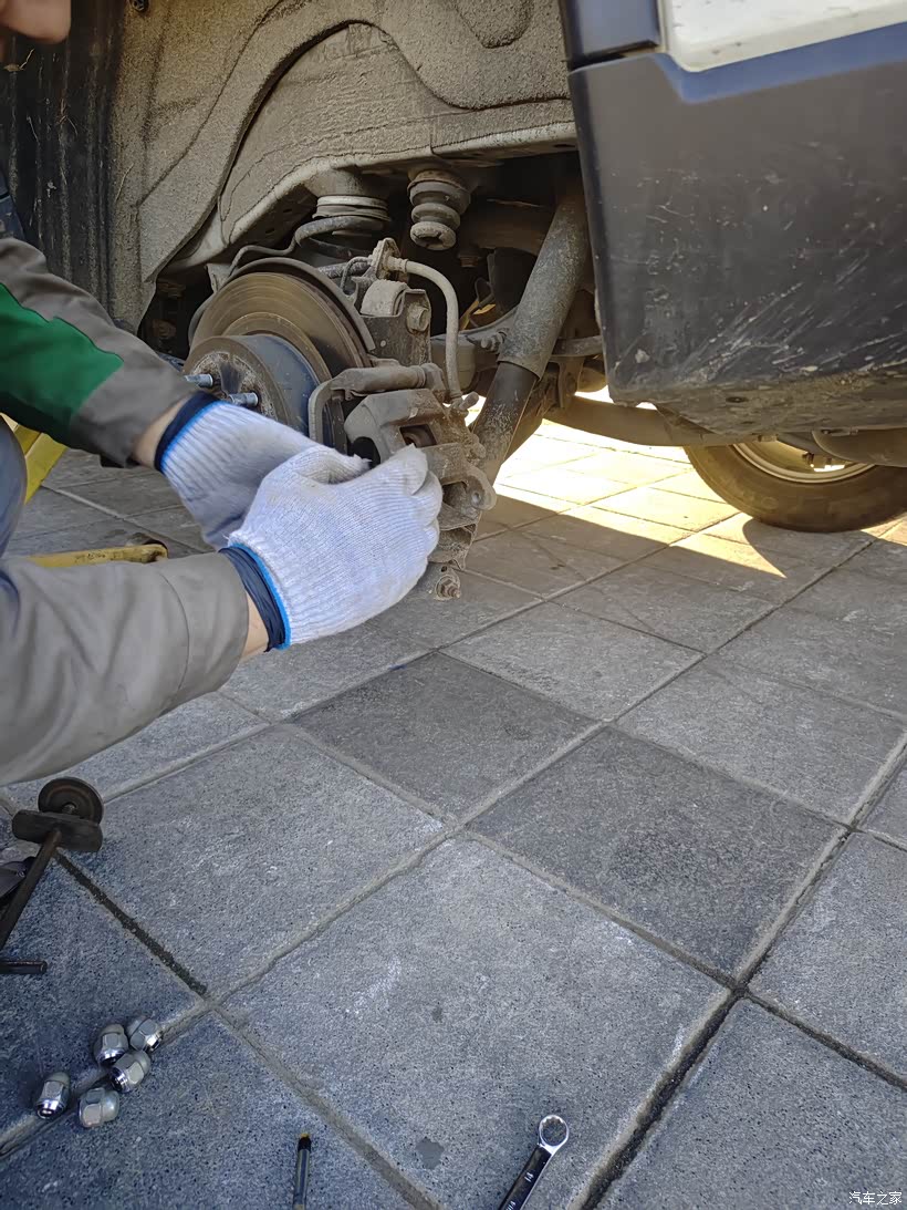 第二天我开车去维修店,师傅把车子顶起来,拆了右后轮的轮毂,卸下旧刹车片。我一看,旧刹车片的摩擦材料确实磨得很薄,难怪会有异响。师傅麻利地把新刹车片装上,调整好刹车间隙,又检查了刹车盘——幸好刹车盘没被过度磨损,不用打磨或更换。