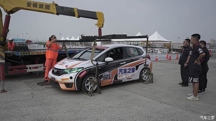 正当第一轮车手还在研究圈速的时候 意外发生了! 601赛车出了意外,失去动力了!