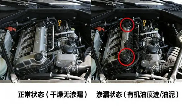 2. 判断标准:正常部件表面干燥、密封件无油迹;若大量渗漏且机油尺油位明显下降,可能渗漏与烧机油并存,需先排除渗漏再判断。