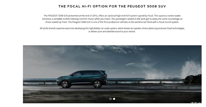 标致在2016年巴黎车展上展出了3008SUV®。 这是世界上第一台配备高端劲浪音响系统的量产车。 还有另外两款具有这种高保真音响系统的车型:标致5008SUV®和标致4008SUV®,后者是专为中国市场而设计的车型。