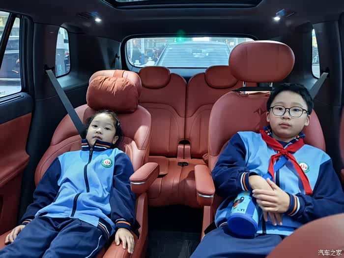 二排右边带腿托的座椅是我闺女的专属座,每天半躺着上下学,别提多会享受了