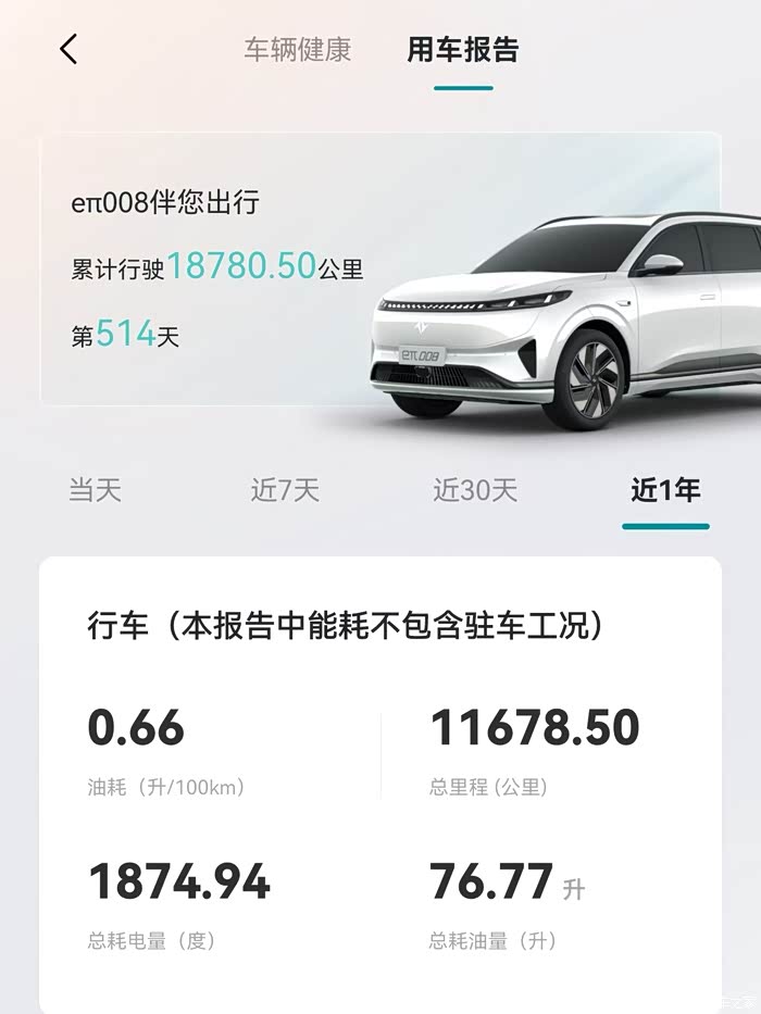 家人们!今天必须来好好唠唠我家这台 “老伙计”——eπ008!从提车到现在整整514天,跑了18780公里,近一年就跑了接近12000公里,平均每个月妥妥1000公里。平时主要就是上下班通勤,再加上接送两个娃上下学,风里来雨里去的,它是真没掉过链子,早就成了我们家不可或缺的第五个成员!这大半年多开下来,心得攒了一箩筐,尤其是想给正在看车选车的朋友掏点实在话,都是亲身经历,希望能帮到大家~