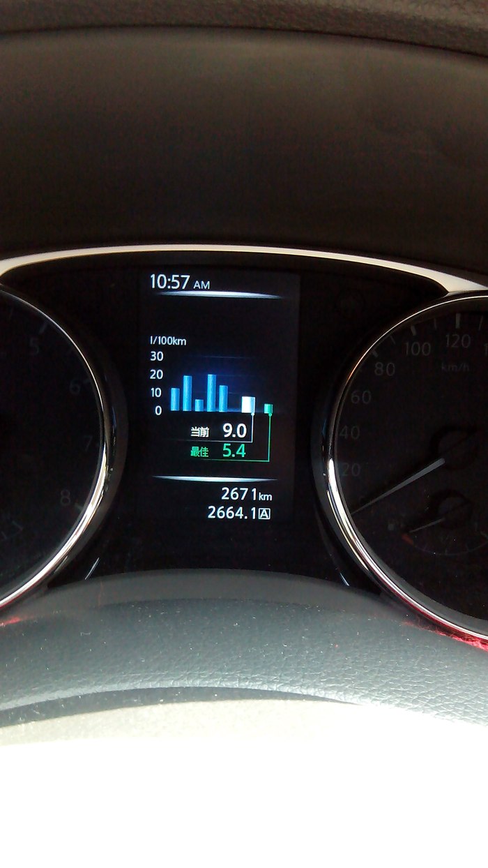 油耗方面:目前磨合期内油耗9.2(市、郊各半),最佳油耗5.4,油耗给个