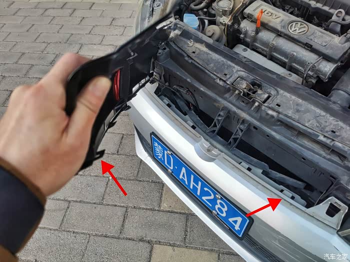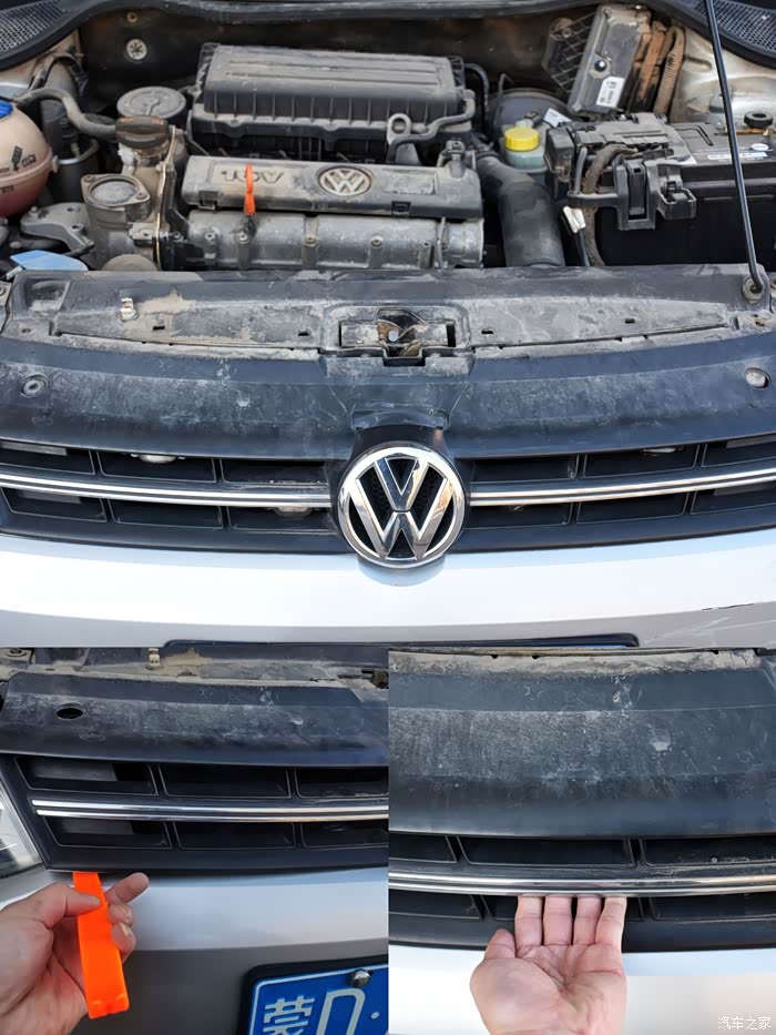 原车中网的拆卸主要就是下面的几个卡扣固定,拆卸的同时利用撬板撬,边撬边向外拽中网