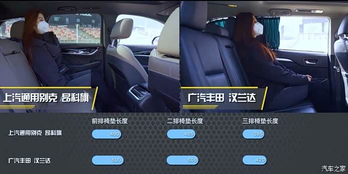 主观使用感受,车内横向空间更加充裕的汉兰达比昂科旗更加舒适。尽管座椅显得板正平直,但填充更为柔软,所有座椅的椅垫尺寸都要比昂科旗更长,而且昂科旗第二排中间座椅并没有配备头枕。另外,乘客进入汉兰达第三排的过程也要比昂科旗更加快捷从容。
