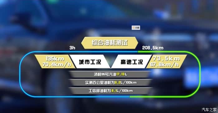 最终,昂科旗累计行驶208.5公里,其中城市路况135公里,高速路况73.5公里,需要说明的是,受疫情影响,测试当日路况非常通畅,测试全程的平均车速高达69.5公里/小时。昂科旗共消耗95号汽油17.13升,实测百公里油耗8.2升/100公里,与表显数据8.0升/100公里相比较为接近,说明行车电脑数据具备较强的可参考性,与工信部8.1升/100公里的综合油耗数据也几乎一致。但考虑到相当之高的测试平均车速,可以推断,真实用车场景下昂科旗的百公里实际油耗至少会上浮1到2升。