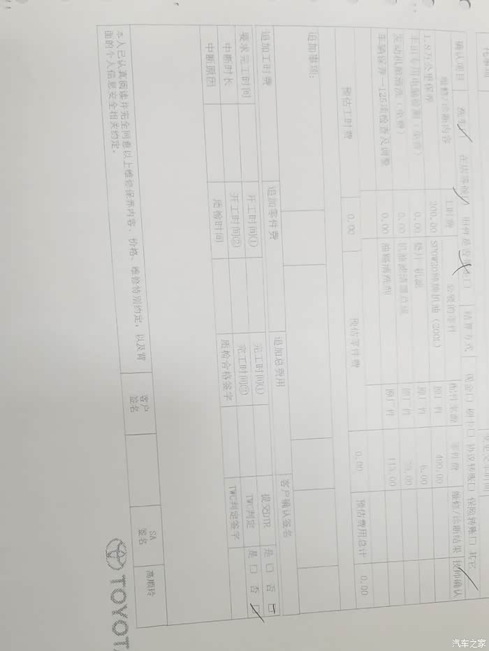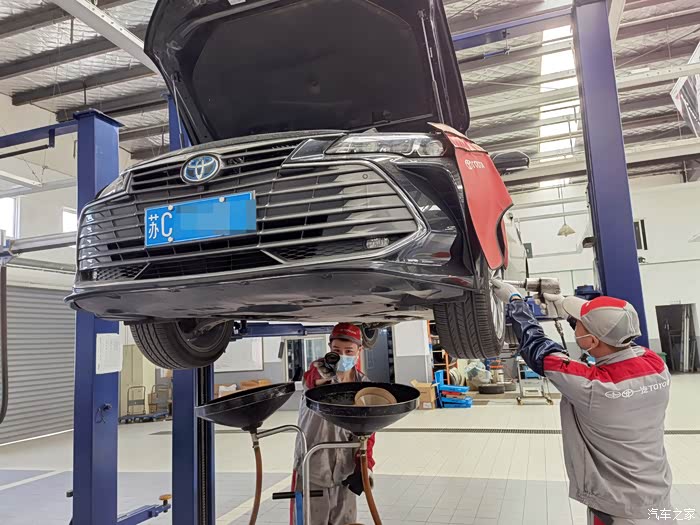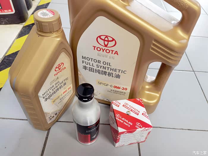 从到店登记把车开进车间,再到保养换机油,大概全程用了有四十分钟时间的时间,效率上还是很不错的。主要就是检查下车子发动机舱的油水什么的,还有就是用举升机把车子支起来换机油和机滤。机油换的是0w20的丰田纯牌机油,全合成的机油用起来也还不错的感觉,外加一个原厂的机油滤芯,然后就是空调滤芯和空气滤芯,这两个都还不太脏毕竟行驶里程比较少所以清理一下就接着用了。从底盘下面把发动机的老机油放出来,这次的机油看上去有点黑,所以跟师傅说让旧机油多流了一会儿。新机油透亮透亮的,厚度也不厚,后来就加进发动机里面。保养用的0w20机油,粘度不会太过粘稠适合夏天使用。