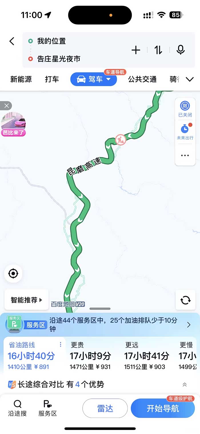 一口气直接干到景洪 中途只加油一次 QX50表现还是很不错的