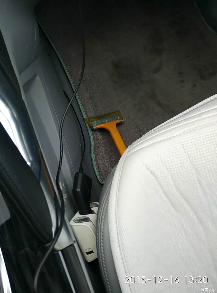 提车后除了胎压监测还增加了行车记录仪、电子狗等,均属于抗造牌,除了点烟器一拖三的黏胶开了
