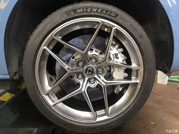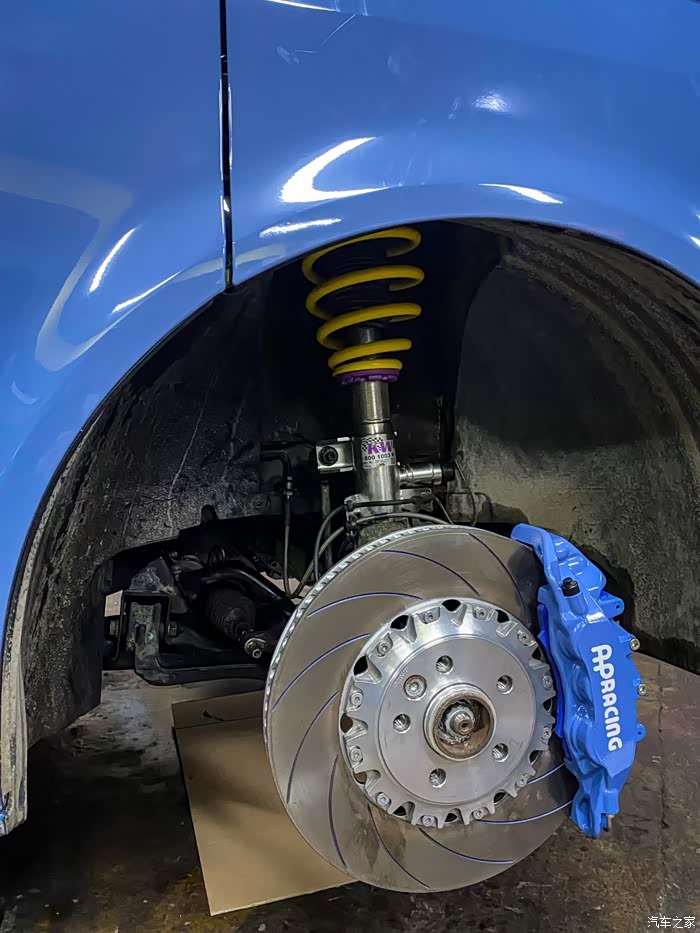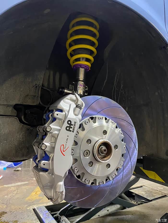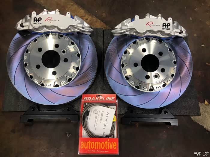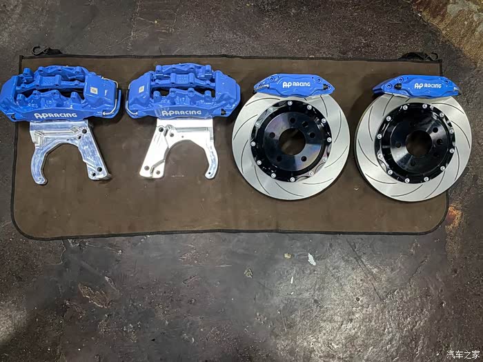 由于动力的升级,和车身自重过大,升级了AP的前六后四卡钳,原厂刹车真的是刹不住。