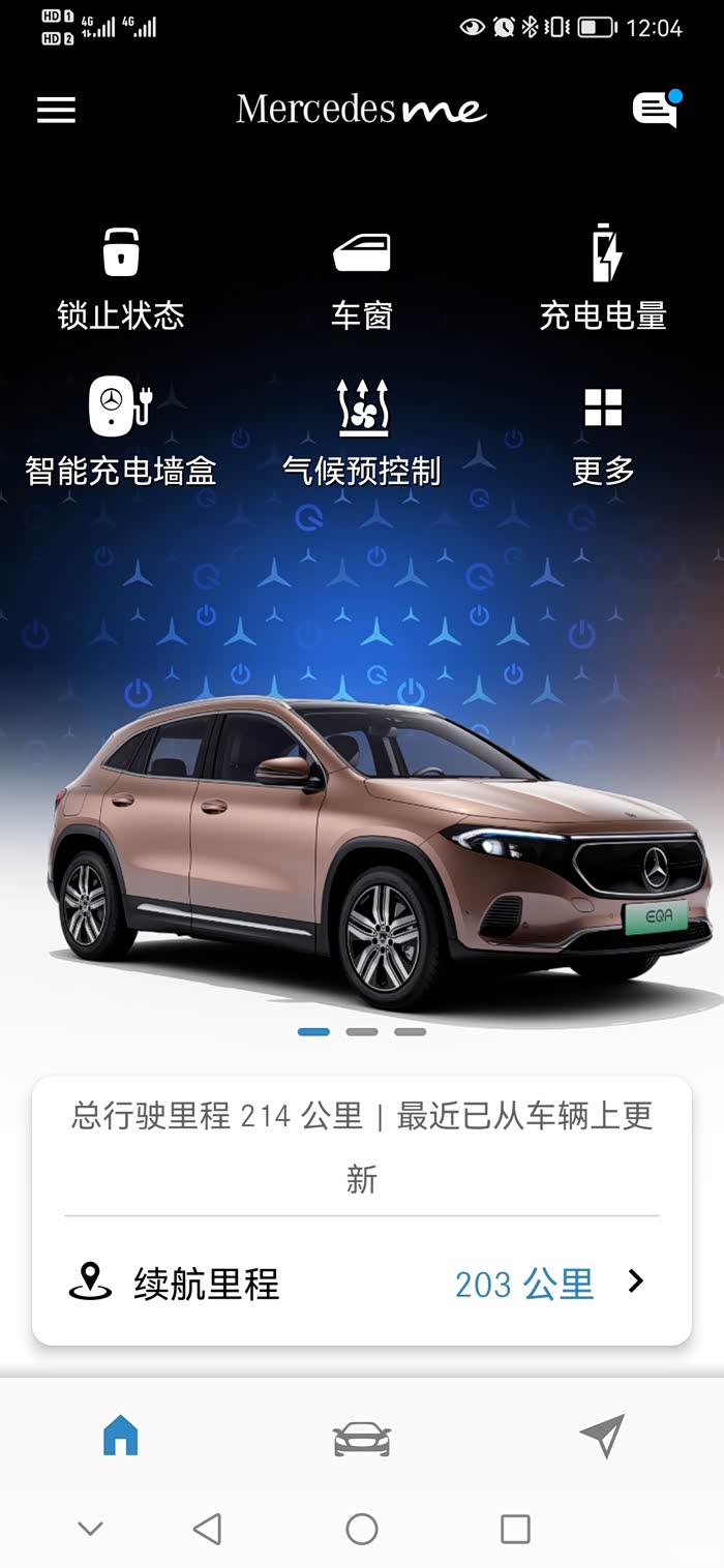 3.奔驰app。客服会帮设置好,主要功能有气候预控制,就是提前开空调;远程充电、开关窗、锁车门、保养、车辆状态等。