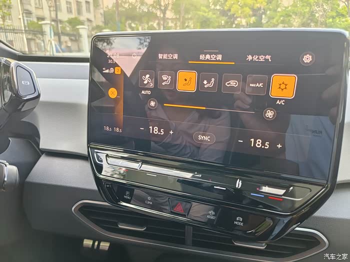 这个空调的风量和温度的调节在显示屏里面,我找了半天都没找到,不过后来发现用语音控制调节也很简单,只要你说将空调调到多少度都可以给你执行。相对而言,我还是更希望空调和音量调节,如果能有实体按键更好,毕竟有些场景需要盲操作,特别是孩子在后面睡着的时候,语音输入也不是那么合适。